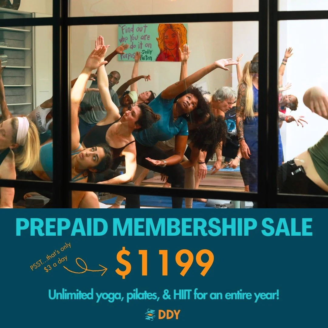 Not ready to commit? This flexible month-to-month option gives you full access to every DDY class for 30 days. No perks, no strings — just yoga, community, and connection while you decide what’s next.